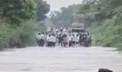 आटकळी मन्याड नदीला आलेल्या पुरामुळे वाहतूक ठप्प – गावाचा संपर्क तुटला