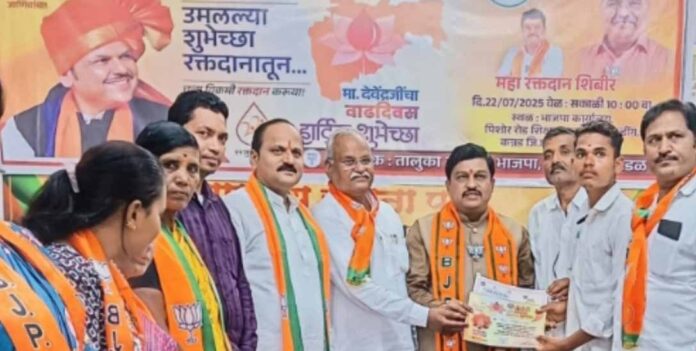 मुख्यमंत्री फडणवीसांचे वाढदिवसानिमित्त कन्नड नगरीत भाजपाचे वतीने पार पडले भव्य रक्तदान शिबीर