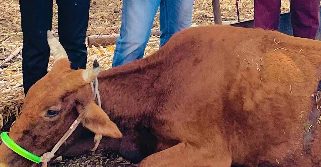 झरी येथे संकरीत गाईच्या पोटातून काढला हिरव्या घासाचा गोळा