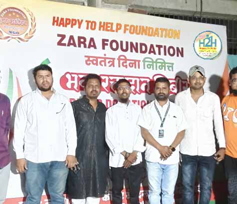 छत्रपती संभाजीनगर: भारत देशाच्या स्वातंत्र्यदिनानिमित्त 10 ऑगस्ट 2025 रविवारी रोजी हॅप्पी टू हेल्प फाउंडेशन आणि जारा फाउंडेशनच्या संयुक्त विद्यमानाने भव्य रक्तदान शिबिराचे आयोजन करण्यात आले. हे रक्तदान शिबीर न्यू बायजीपुरा कॉर्नर, सेंट्रल नाका रोड, अलहुदा मुलीची माध्यमिक शाळेच्या बिल्डिंगमध्ये सकाळी 10 ते सायंकाळी 7 वाजेपर्यंत सुरू होते. भारत देशाच्या स्वातंत्र्यदिनानिमित्त देशासाठी समर्पित हा भव्य रक्तदान शिबीर ठेवण्यात आले होते. शिबिरात 51 रक्तदात्यांनी रक्तदान केले. हॅप्पी टू हेल्प फाउंडेशनतर्फे या सर्व रक्तदात्यांचे आभार मानत सर्वांना पेन गिफ्ट करण्यात आलें. रक्त संकलनाचे कार्य संजीवनी रक्त केंद्राच्या सर्व टिमने केले. संजीवनी रक्त केंद्राच्या सर्व टीमला ही हॅप्पी टू हेल्प फाउंडेशनतर्फे पेन गिफ्ट करण्यात आले. हॅप्पी टू हेल्प फाउंडेशन तर्फे संस्थापक अध्यक्ष शेख अब्दुल रहीम सर व इतर सहकाऱ्यांनी आणि जारा फाउंडेशनचे संस्थापक अध्यक्ष जावीद मुकीम पटेल व त्यांच्या सहकाऱ्यांनी रक्तदान शिबीर यशस्वी करण्यासाठी परिश्रम घेतले.