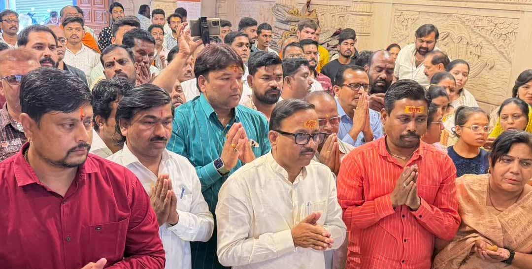 जालना/प्रतिनिधी/  आयोध्येतील श्रीराम मंदिरावर माननीय पंतप्रधान नरेंद्र मोदी यांच्या हस्ते केशरी धर्मध्वज फडकाविण्याचा ऐतिहासिक क्षण साजरा करण्यासाठी जालना शहरातील राम मंदिर, बडी सडक येथे भव्य महाआरतीचे आयोजन आज २५ नोव्हेंबर २०२५ रोजी करण्यात आले होते. कार्यक्रमाला रामभक्त, नागरिक, तसेच भाजपा पदाधिकारी व कार्यकर्त्यांनी मोठ्या संख्येने उपस्थिती लावली. संपूर्ण वातावरण जय श्रीराम च्या घोषणांनी दुमदुमले होते. यावेळी भाजपा जालना महानगर जिल्हाध्यक्ष भास्कर आबा दानवे यांची प्रमुख उपस्थिती होती.