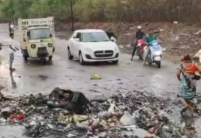 महानगरपालिकेच्या दुर्लक्षामुळं नालीची घाण आणि कचरा रस्त्यावर..