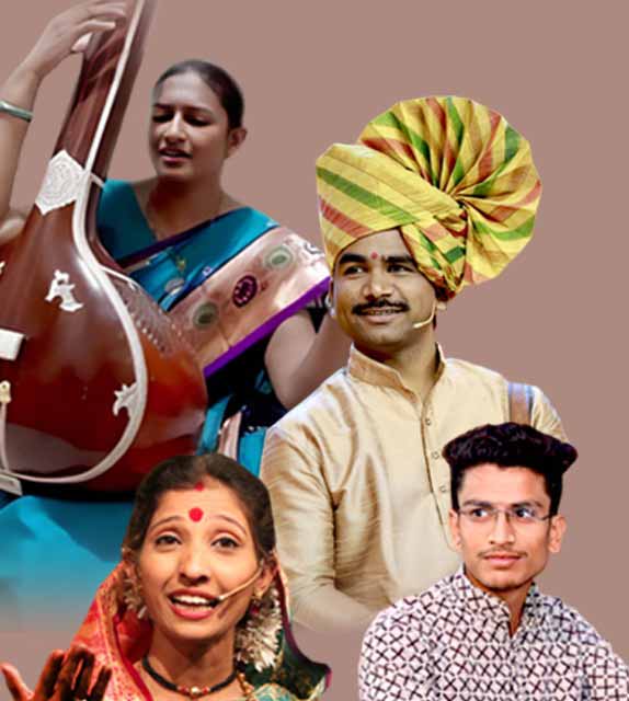 या कार्यक्रमात अनेक नामांकित कलाकार यामध्ये सहभागी होणार असून प्रमुख सादरकर्ते म्हणून डॉ. मोहिनी रायबागकर, प्रा. शाहीर कल्याण उगले, शाहीर माधवी माळी उगले, तसेच तबलावादनात कुशलता प्राप्त जय कराड यांचे मनोहारी सादरीकरण रसिकांच्या अनुभवास येणार आहे. विशेष म्हणजे लोककला विभागातील सर्व विद्यार्थीही विविध भक्तिगीते सादर करणार आहेत. यामध्ये शोहेब शेख, हरेश उगले,आदित्य मुदीराज, प्रतीक साळुंखे,ज्ञानेश उगले, आनंद घुले,ओंकार सुलाखे, सोहम उगले व गणेश साळवे यांचा या कार्यक्रमात सहभागी आहे