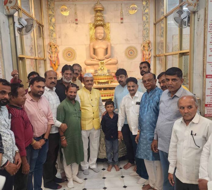 छत्रपती संभाजीनगर/प्रतिनिधी/ खंडेलवाल दिगंबर जैन पंचायत पार्श्श्वनाथ मंदिर राजाबजार येथे आचार्य प्रणासागरजी महाराज यांचा २०२५ चा चातुर्मास मोठया उत्साहाने सुरâ असुन रोज विविध धार्मिक कार्यकमांचे आयोजन करण्यात येत आहे. नुकतीच माजी केंद्रीय अर्थ राज्यमंत्री खा.भागवत कराड यांनी राजाबजार जैन मंदिराला भेट देवुन भगवान शांतीनाथांच्या चरणी श्रीफळ अर्पण करâन भगवंताचे दर्शन घेतले. यावेळी येथे वास्तव्यास असणा-या आचार्य प्रणामसागरजी महाराज यांचे दर्शन घेवुन त्यांच्याशी वार्तालाब केला. यावेळी आचार्यश्रींनी भागवत कराड यांना आर्शिवाद देतांना सांगीतले की, तुम्हाला जे पद मिळाले आहे हे लोकांची सेवा करण्यासाठी व जन सेवेसाठी मिळाले आहे. तुमचे कर्तुत्व असल्यामुळे तुम्हाला हे सर्वोच्च पद मिळाले आहे. तरी या पदाचा मान राखुन तुम्ही सदैव राष्ट्राची, देशाची, गुरâजनांची व जनतेची सदैव सेवा करा. असे सांगीतले. या प्रसंगी भागवत कराड यांनी आचार्यश्रींचे दर्शन घेवुन सांगीतले की, आचार्यश्री आपण जो आर्शिवाद दिला आहे. त्या आर्शिवादाला योग्य उतरण्यासाठी मी सैदव प्रयत्न करेल व आपण सांगीतल्या प्रमाणेच सदैव जनसामान्यांची राष्ट्राची,देशाची व गुरâजनांची सेवा करत राहील असे सागीतले. यावेळी खंडेलवाल दिगंबर जैन पंचायतच्या वतीने भागवत कराड यांचा शाल,श्रीफळ व स्मृतीचिन्ह देवुन सचिव प्रकाश अजमेरा व किरण पहाड़े यांनी सत्कार केला कार्यकमाचे प्रास्ताविक व सुत्रसंचालन पंचायतचे सचिव प्रकाश अजमेरा यांनी केले. यावेळी प्रकाश अजमेरा यांनी खा.भागवत कराड यांना येत्या चार महिन्यात चातुर्मास काळात होणा-या विविध कार्यकमात आपली उपस्थिती सदैव प्रार्थनिय राहील असे सांगीतले.