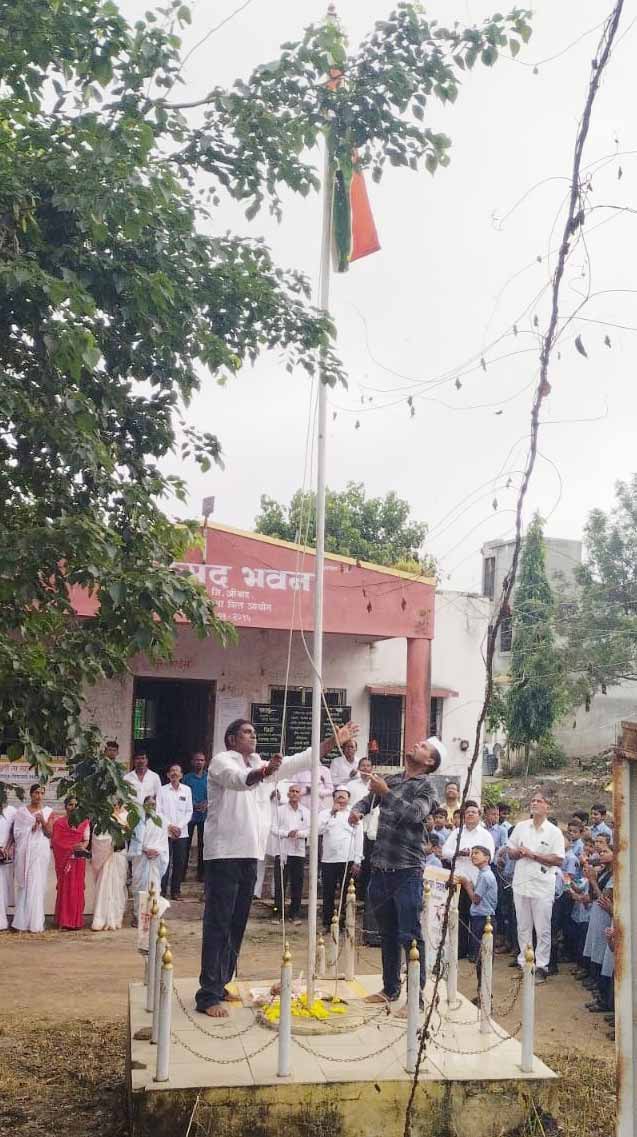 खिर्डी ग्रामपंचायत समोर ध्वजारोहण शेख चांद यांचे हस्ते संपन्न