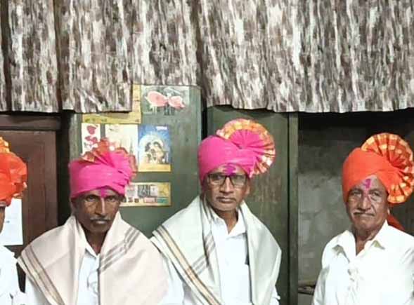 नूतन चेअरमन रघुनाथ हरी पाटील व व्हा. चेअरमन भिकु कृष्णा पाटील यांचा माजी चेअरमन बाबू महादेव दळवी, विष्णू कृष्णा सुतार, जयसिंग पाटील, तंटामुक्त अध्यक्ष विलास पाटील यांच्या हस्ते सत्कार करण्यात आला.यावेळी उपस्थित सर्व संचालक व गावातील जेष्ठ नागरिकांना फेटे बांधण्यात आले होते.