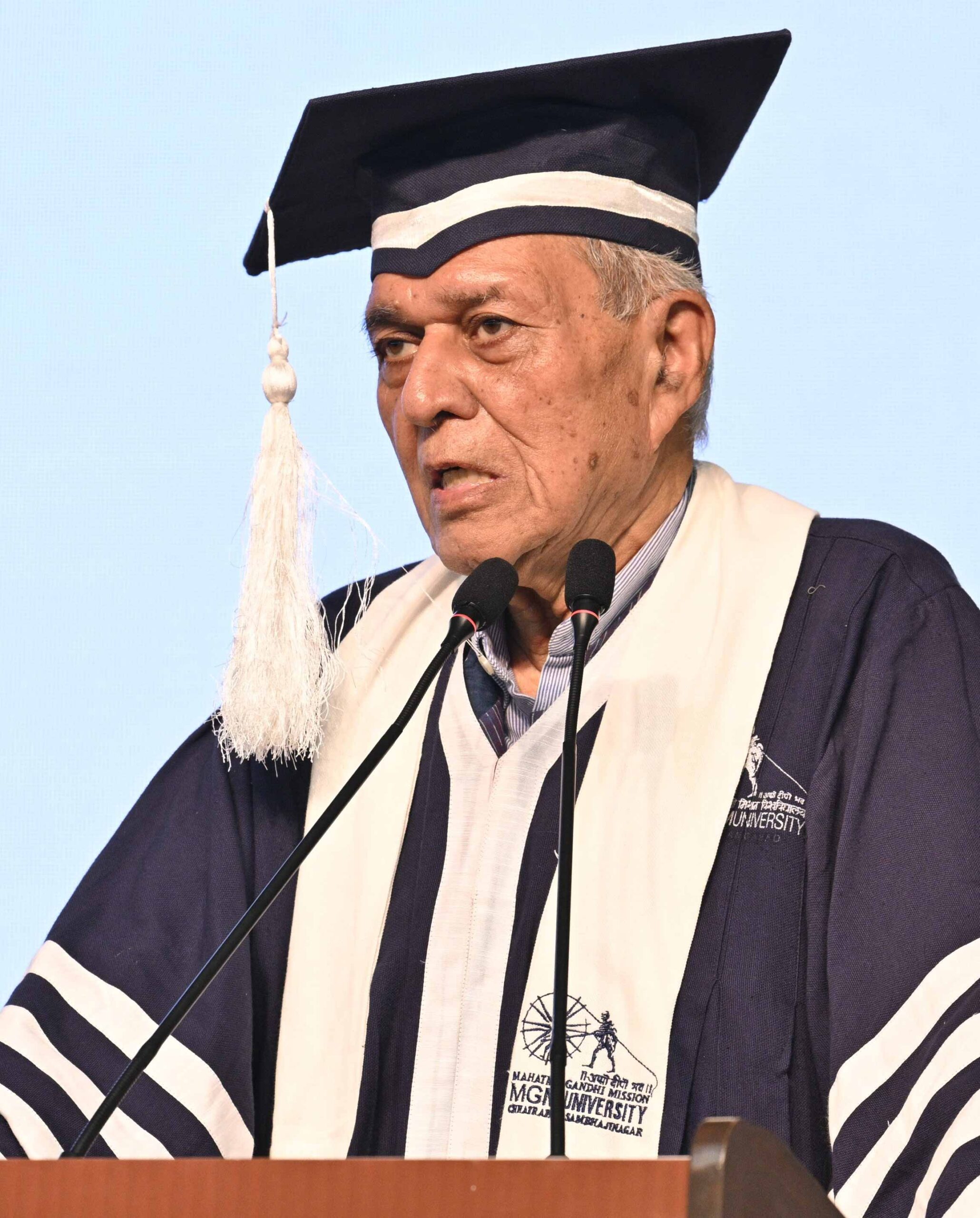 आज मला एमजीएम विद्यापीठाने मानद डीएससी पदवी दिल्याबद्दल मी विद्यापीठाबद्दल कृतज्ञता व्यक्त करतो. सर्व विद्यार्थ्यांचे मी अभिनंदन करतो. मी ३३ वर्षे प्राध्यापक म्हणून काम केले आहे. आपण ज्या संस्थेत शिकलेलो असतो त्या संस्थेबद्दल कायम कृतज्ञता बाळगत जीवनाचा प्रवास केलं पाहिजे. त्याचप्रमाणे आपण कायम आपले ज्ञान वाढवत त्यास अद्ययावत करत राहिले पाहिजे. विशेषत : आपण ज्याही क्षेत्रात काम करणार असाल त्या क्षेत्रात नैतिक मूल्य जपत काम करा, असे यावेळी पद्मविभूषण प्रो.एम.एम.शर्मा यांनी सांगितले.