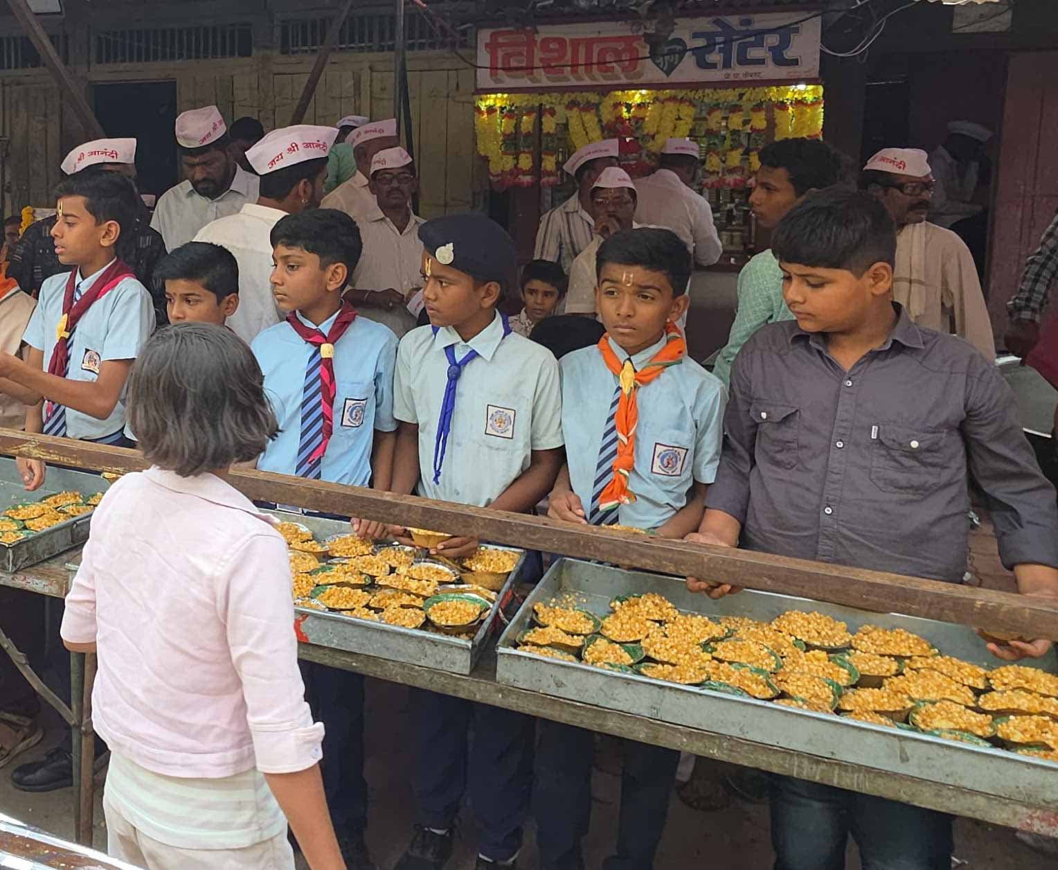 स्काऊट गाईडच्या विद्यार्थ्यांनी भाविक भक्तांना प्रसादाचे वाटप केले.