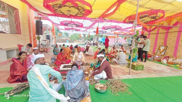सोयगाव /प्रतिनिधी / विजय पगारे / सोयगाव तालुक्यातील पिंपळा येथे (ता.३) गुरुवारी सकाळीसत्रात सात वाजता हा.भ.प.श्री.वासुदेव महाराज शास्त्री, रूख्मीणी पांडुरंग संस्थान,वागजाळफाटा ता मोताळा जि.बुलढाणा हस्ते शांतिपिठ, संकल्प, स्थापित, देवपुजन, महाराजांचा, राज्याभिषेक, महाआरती, तर ९:१६ वा. प्राणप्रतिष्ठा, तदनंतर १०:१५ कळसस्थापना झाले.आणि उपस्थित पंचक्रोशीतील भाविक भक्त परिवारास स्वादिष्ट महाप्रसाद कार्यक्रम मोठ्या उत्साहात भक्तीमय वातावरणात सांगता करण्यात आली.
