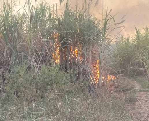 लखमापुरी येथे शॉर्ट सर्किटमुळे दहा एकर ऊस जळून खाक