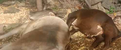 दावणीला बांधलेल्या तीन जनावरांच्या अंगावर मुख्य विज तार कोसळून जनावरे विजेचा शॉक लागून ठार झाल्याची घटना सोमवारी सकाळी आठ वाजता घडली दरम्यान या प्रकरणी दुपारी दोन वाजता महसूल व महावितरणच्य पथकाने घटनेचा पंचनामा केला असून यामध्ये दोन बैल व गायीचा मृत झाले आहे दरम्यान या घटनेत शेतकऱ्याचे दोन लाख चाळीस हजार रु चे नुकसान झाल्याचे महसूलच्या पंचनाम्यात नमूद आहे दुपारी तीन वाजता पंचनाम्याचा अहवाल जिल्हाधिकारी कार्यालयात सादर करण्यात आला आहे