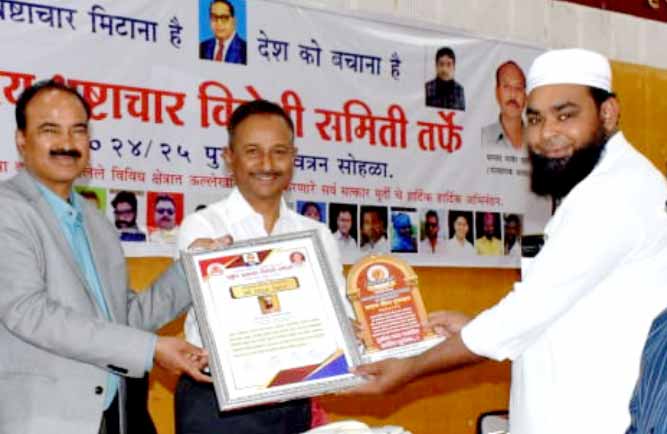 राष्ट्रीय भ्रष्टाचार विरोधी समिती तर्फे समाजसेवक मुनव्वर अन्सारी यांना सन्मानित